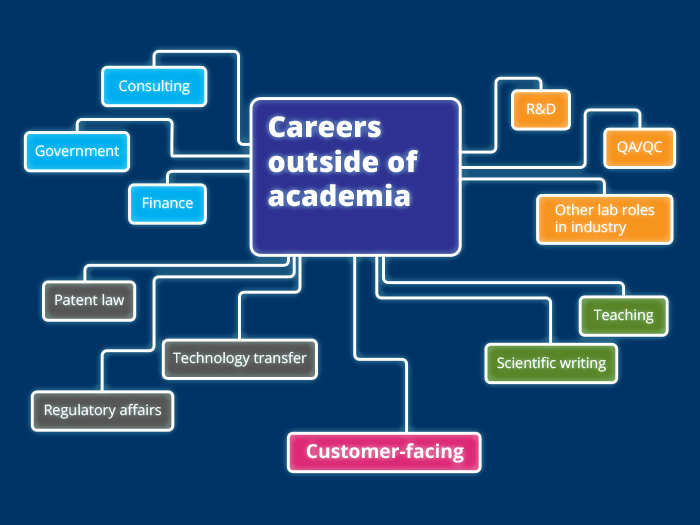 Keren Abecassis In a previous post, I told you about my own career path and promised to tell you more about customer-facing careers in the scientific industry. Jobs most science graduates have never thought of doing or have misconceptions about Here is a list of typical careers outside of academic research that people go to after a science degree, PhD or postdoc: When I was a scientific recruiter, I realised that most science graduates or PhDs had never heard of many of the roles I was recruiting for. Or, if they had heard of them, many of them had never considered doing them before. I’m referring to the commercial/customer-facing roles in the scientific industry. And this is a shame, because for the right people, these can be very rewarding alternative careers, particularly if you wanted to step out of the lab but still use your science background. I should know – this is the path I chose for myself. So in this post I’ll tell you a bit more about these careers. Let’s be honest, not everyone has the people skills for customer-facing roles. But if you do, and you don’t want to stay in the lab, there are a variety of careers worth exploring. Also, getting into your first customer-facing role can give you access to other ones in the future. Technical Sales This is the career most graduates have misconceptions about. The picture of the annoying door-to-door or call-centre salesperson is in everybody’s mind. However, if you go into technical sales with a scientific background, you will be selling to scientists using your technical knowledge. The more technical the offering, the less it will feel like you are trying to ‘flog stuff’. You will be having conversations with potential customers about their needs and offer the right solution accordingly. What is it? Sales of scientific products (chemicals, consumables, equipment, instruments and/or services) to scientists in the lab. Can include any combination of these activities: finding new customers, keeping in touch with existing customers, discussing products on offer (sometimes including demonstrating them), negotiating and closing a deal. Can be office-based (inside sales) or field-based (sales representative). In the UK, most sales careers will start in an office-based role and evolve into a field-based role after anywhere between 6 and 24 months. You first sales role can be mainly focused on prospecting for new customers and rely heavily on cold-calling. This might not be the most glamourous job but it can be an extremely efficient sales training apprenticeship – you learn how to handle rejection and be resilient. If you have a softer touch but would really love to sell, account management roles are certainly more appropriate. This time you are selling to existing customers, making sure they are happy with your company’s products and that they keep buying, as well as selling them products they are not currently buying from you. Account management at a junior level is a bit rarer than prospecting roles though. Another aspect that separates sales from other customer-facing roles is that you will usually be paid a basic salary plus a commission on top. This makes sales very attractive for money-motivated and target-driven people as the better you do in your role, the more money you will earn. Business development is a very generic term that can describe a variety of activities aiming at growing a company’s business. For some companies, a business development position will be a sales role focused on new business (as opposed to account management). For others, there are no direct sales involved but a mix of activities (e.g. networking, market strategy) to identify potential areas for business growth. For you if: You are target-driven, confident and convincing, self-motivated, resilient and money-motivated. You are at ease communicating with people at all levels (from a bench scientist to the head of a department). Not for you if: You don’t handle rejection well, you want stable earnings and are not comfortable with a commission-based salary. You are looking for a hands-on role. Marketing There are two main ways into scientific marketing – you are a scientist looking to learn marketing skills or you are qualified/experienced in marketing and join a scientific company. What is it? Technical marketers can be involved in every phase of the product cycle, from market research and product concept and development, to digital marketing (website, SEO, e-commerce and social media), events management and advertising. Scientists going into marketing are more sought after than one might think. In the right company with a structure allowing it to train people, your scientific knowledge can be very valuable to a marketing team. You could for example start as a copywriter – the person who can write something appealing about a technical product. For this, you will very likely need evidence of scientific as well as non-scientific writing experience. But the writing aspect will certainly only be the start of your marketing career. For you if: You are creative, flexible and have a good attention to detail. You enjoy working with other departments in a company (e.g. sales and R&D). Not for you if: You don’t like computer-based work, writing or multi-tasking. Technical or Application Support For these roles, you may need a bit more than a BSc. It could be a higher academic degree but also experience in the lab after your degree. This is usually the step into commercial that PhDs are most comfortable with straight out of the lab. What is it? Technical support is usually an office-based role where you are in contact with customers on the phone, via email or sometimes even via remote desktop connection to help them figure out a solution to a problem they are having with one of your products. Depending on the company size and structure, technical support can involve a lot more, such as, for example, pre-sales technical advice to assist cust