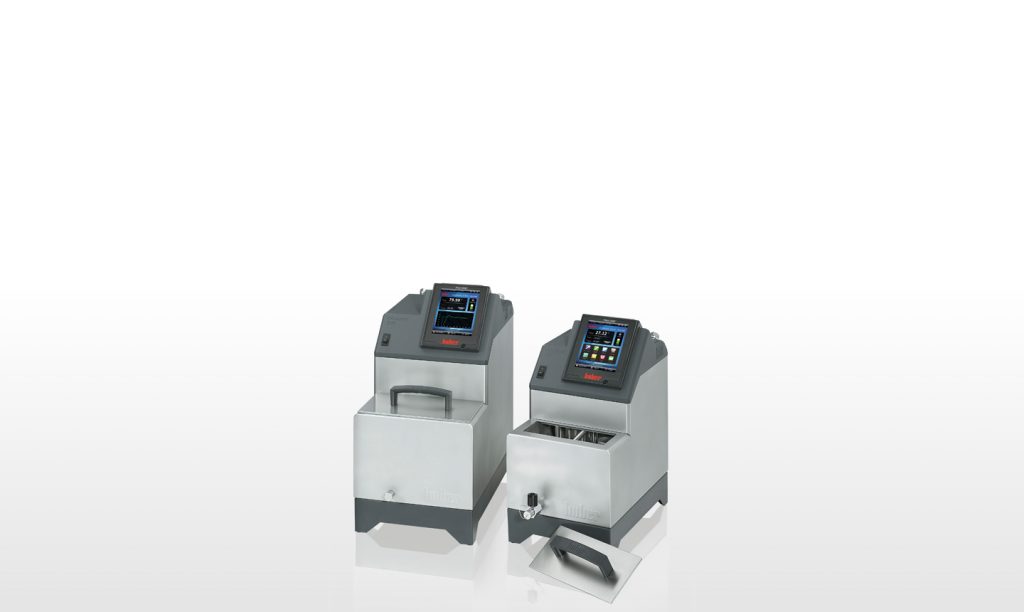 Huber Ministats are the world’s smallest cooling circulators. Thanks to their compact dimensions, the units can be operated in very confined spaces, for example in a laboratory fume cupboard or inside a technical plant. Despite their minimal size, the systems are extensively equipped and offer sufficient performance for temperature control of photometers, refractometers, viscometers, distillation apparatuses, reaction tubes and mini-plants. Ministats are primarily used for temperature control of externally connected applications. Still, their bath openings are large enough to permit the temperature control of smaller objects directly in the bath. The Ministat series comprises three basic models, each of which is available in an air-cooled and a water-cooled variant. Depending on the model, operating temperatures of -45 to +200 °C are covered and refrigerating capacities of up to 600 Watt are reached. The efficient pressure-suction pump with infinitely adjustable speed ensures optimum transfer of the heat to the application. The Ministats furthermore comprise the touchscreen controller Pilot ONE with its 5.7“colour display and USB and network connections. Another benefit is the electronic upgrade function which enables additional features such as programmer, cascade regulation, ramp function, user menus, calendar start, and graphic display. Analogue connections according to NAMUR are available via the optional Com.G@te module, which allows for integration of the Ministats in plants and process control systems.
