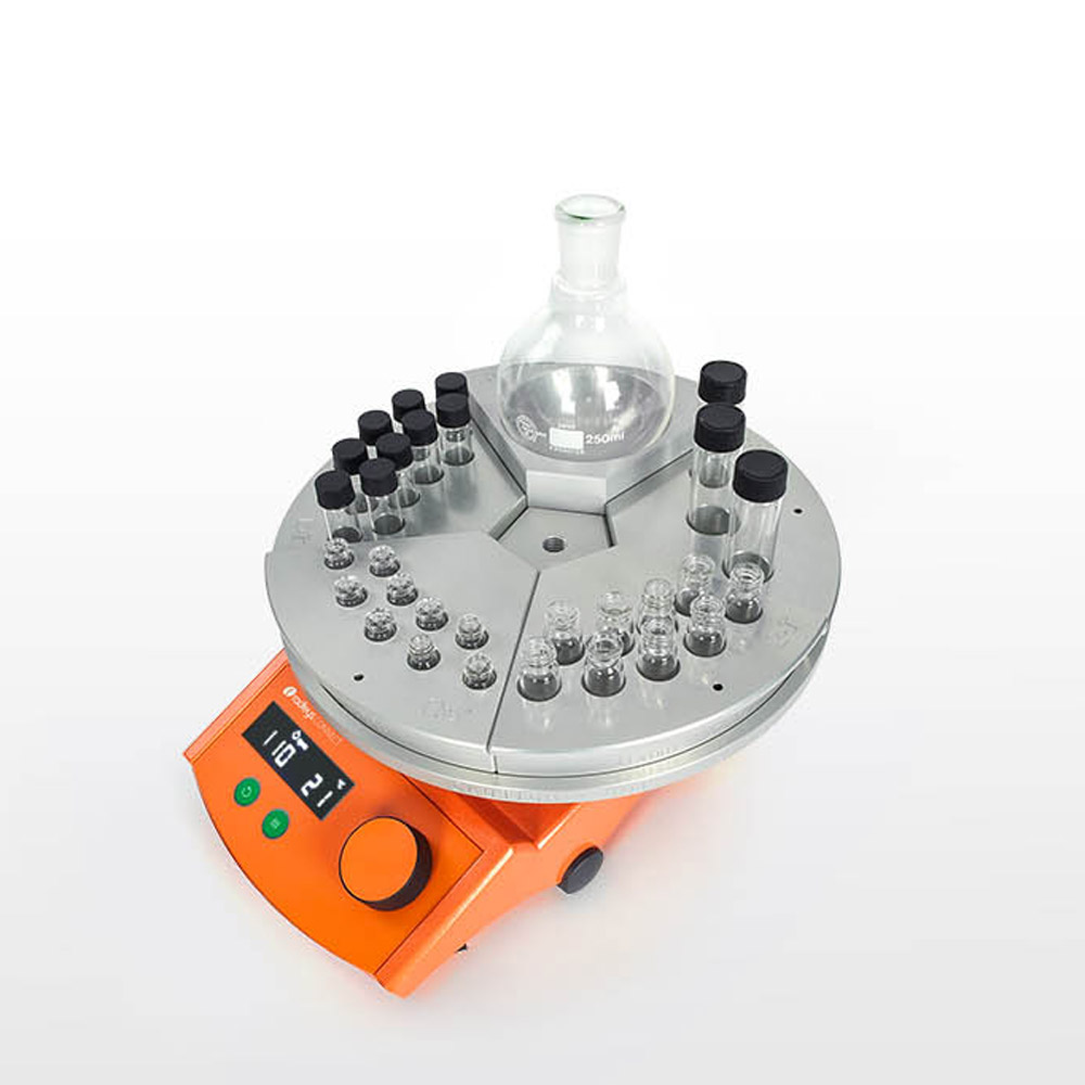 The StarFish Multi-Experiment Work StationWhether you want to just heat and stir, or perform more complex parallel experiments, StarFish really can make your life easier and improve productivity. Fits all leading brands of stirring hotplateAccepts standard vials, test tubes, beakers and flasksSet-up vessels individually or in parallelFor popular heating and stirring applicationsSuch as Synthesis, Distillation or Extraction What are the benefits? Space saving – uses less space than multiple heating and stirring set-ups Increases productivity – multiple positions allow you to heat, stir and reflux experiments in parallel Cost effective – use your existing stirring hotplate and glassware. Eliminate the cost of multiple set-ups Safer, cleaner working – eliminate oil baths, reduce spills, mess and accidents Flexible – use as many positions as you want Easy to use and quick to assemble Compact – store spare components in a drawer and not on the bench StarFish has proven popular in the following laboratories: Teaching and university Chemistry and biochemistry Environmental analysis Food testing Analytical Book an online demo Key features The range Downloadable resources Case studies Blog Gas/Vacuum Manifold Even distribution to up to five positions or vessels Quick-release connectors Leak-proof shut-off valves Central Support Rod Single or two piece options Screws into baseplate Stainless Steel Universal 3 or 5-way Telescopic Clamps Adjusts to hold a wide variety of glassware Velcro or rubber straps Water Manifold Distributes water to up to five condensers simultaneously Quick-release connectors Leak-proof shut-off valves MonoBlocks or PolyBlock Wide choice of block options From vials to 500 ml flasks Use your own hotplate and glassware Compatible with all popular brands of stirring hotplate Choice of Base Plates For round or square hotplates Optional handles 500 ml MonoBlock and Clamp Accepts 3 x 500ml flasks Universal 3-way telescopic clamp Base Plates and Accessories RR95010 StarFish Base Plate 135mm (for Radleys and IKA) RR95020 StarFish Base Plate 145mm (for Heidolph) RR95040 StarFish Base Plate 184 x 184mm (for Cimarec) RR95100 StarFish Base Plate Handles (Pair) RR95665 650mm Rod RR95666 650mm Split Rod RR95980 Adjustable Spanner MonoBlock Range RR95125 MonoBlock for 3 x 500ml Flasks RR95130 MonoBlock for 5 x 250ml Flasks RR95135 MonoBlock for 16 x 25mm Tubes RR95140 MonoBlock for 16 x 24mm Tubes RR95145 MonoBlock for 40 x 16mm Tubes RR95150 MonoBlock for 40 x 12mm Tubes RR95152 MonoBlock for 16 x 28mm Vials RR95155 MonoBlock for 20 x 21mm Vials (4 dram) RR95160 MonoBlock for 40 x 17mm Vials (2 dram) RR95165 MonoBlock for 40 x 15mm Vials (1 dram) RR95170 MonoBlock for 40 x 12mm Vials (2ml) PolyBlock Range RR95230 PolyBlock for 1 x 250ml Flask RR95235 PolyBlock for 3 x 25mm Tubes RR95240 PolyBlock for 3 x 24mm Tubes RR95245 PolyBlock for 9 x 16mm Tubes RR95250 PolyBlock for 9 x 12mm Tubes RR95252 PolyBlock for 3 x 28mm Vials RR95255 PolyBlock for 3 x 21mm Vials (4 dram) RR95260 PolyBlock for 7 x 17mm Vials (2 dram) RR95265 PolyBlock for 9 x 15mm Vials (1 dram) RR95270 PolyBlock for 9 x 12mm Vials (2ml) Reducing inserts for flasks Aluminium reducing inserts for flasks from 5 ml to 150 ml fit in 250 ml MonoBlock or PolyBlock wells. RR95330 150ml Flask Insert RR95335 100ml Flask Insert RR95340 50ml Flask Insert RR95345 25ml Flask Insert RR95350 10ml Flask Insert RR95355 5ml Flask Insert Distribution Manifolds and Tubing RR95500 Water Manifold with connectors RR95510 Gas/Vacuum Manifold with connectors RR95535 Tubing for Manifold outlets 15m x 6.4mm RR95540 Tubing for Manifold inlets 15m x 8mm Universal Clamps and Accessories RR95400 Telescopic 5-way Clamp with Velcro RR95405 Telescopic 3-way Clamp with Velcro RR95410 Telescopic 5-way Clamp with Silicone Strap and Long Handle RR95415 Telescopic 3-way Clamp with Silicone Strap and Long Handle RR95450 RR95400 to RR95410 Conversion Kit RR95412 Clamp Long Handle RR95430 Self-Adhesive Velcro Pads RR95432 Strap Securing Pins RR95440 Velcro Loop Strips 200mm RR95442 Silicone Strap 200mm RR95444 Viton Strap 200mm Round Bottom Flasks RR94040 500ml Round Bottom Flask 24/29 Socket RR94050 250ml Round Bottom Flask 24/29 Socket RR94055 250ml Round Bottom Flask 19/26 Socket RR94060 150ml Round Bottom Flask 24/29 Socket RR94065 150ml Round Bottom Flask 19/26 Socket RR94070 100ml Round Bottom Flask 24/29 Socket RR94075 100ml Round Bottom Flask 19/26 Socket RR94080 50ml Round Bottom Flask 24/29 Socket RR94085 50ml Round Bottom Flask 19/26 Socket RR94090 25ml Round Bottom Flask 24/29 Socket RR94095 25ml Round Bottom Flask 19/26 Socket RR94100 10ml Round Bottom Flask 14/23 Socket RR94105 10ml Round Bottom Flask 10/19 Socket RR94110 5ml Round Bottom Flask 14/23 Socket Round Bottom Flasks with Sidearm RR94145 500ml R/B Flask 24/29 with 19/26 Sidearm RR94150 250ml R/B Flask 24/29 with 19/26 Sidearm RR94155 100ml R/B Flask 24/29 with 19/26 Sidearm RR94160 50ml R/B Flask 14/23 with 14/23 Sidearm RR94165 25ml R/B Flask 14/23 with 14/23 Sidearm Azeotropic Flask RR94250 250ml Azeotropic Reaction Flask 24/29 with 19/26 Sidearm Test Tubes (pack of 100, medium wall) RR94005 24 x 150 T/Tube with Rim RR94010 24 x 150 T/Tube without Rim RR94015 16 x 100 T/Tube with Rim RR94020 16 x 100 T/Tube without Rim RR94025 12 x 100 T/Tube with Rim RR94030 12 x 100 T/Tube without Rim Condensers RR94180 Liebig Condenser 208mm 19/26 RR94185 Liebig Condenser 250mm 24/29 RR94190 Liebig Condenser 250mm 29/32 RR94195 Coil Condenser 165mm 19/26 RR94200 Coil Condenser 165mm 24/29 RR94205 Coil Condenser 165mm 29/32 RR94210 Allihn Condenser 250mm 19/26 RR94215 Allihn Condenser 250mm 24/29 RR94220 Allihn Condenser 250mm 29/32 Soxhlet RR94230 20ml Soxhlet 19/26 Cone 24/29 Socket RR94235 40ml Soxhlet 24/29 Cone 29/32 Socket RR94240 60ml Soxhlet 24/29 Cone 34/25 Socket RR94245 100ml Soxhlet 24/29 Cone 40/38 Socket Right Angle Adapters (pack of 5) RR94260 Adapter B19 Cone to SQ13 Screwthrea